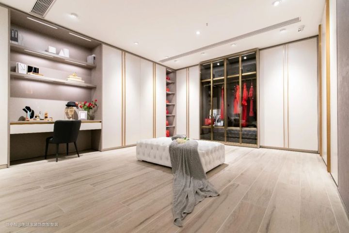 但是其实家装风格的选择,与我们每个人的生活习惯和节奏息息相关,没有绝对的风格选择,到了真正需要装修的时候,在符合本来生活习惯的设计里面,再添加自己喜欢的元素就可以了。如现代风格色调简约而低调,配合这套线条流畅的“vifa定制”衣柜。白色的纯净、灰褐的低调、绒面杏的柔和,三种颜色的用色比例经过比划调教,呈现一种互相协调的平衡状态和高级感。整个房子给人浓厚的清新感,日常生活上很有温馨感,很符合现代人们的审美和生活趋势。