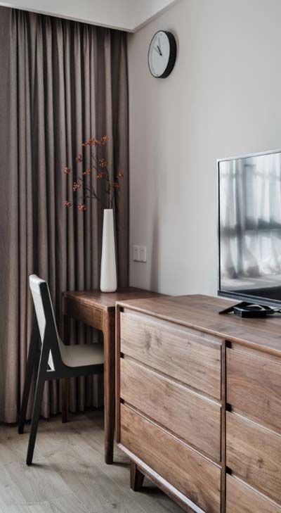 次卧同样运用原木元素,设计师在不改变原次卧的格局下,隔出一个步入式衣帽间,让次卧的功能性更加完整。