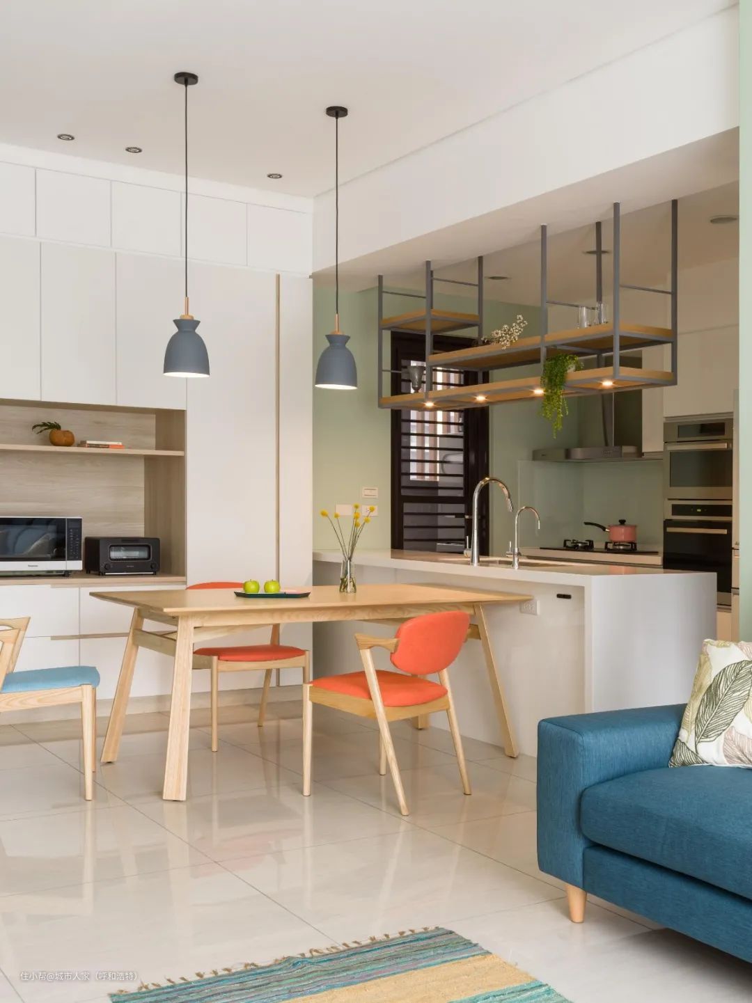 31、如果餐厅空间小,可以用卡座代替餐椅,节省空间还能储物。