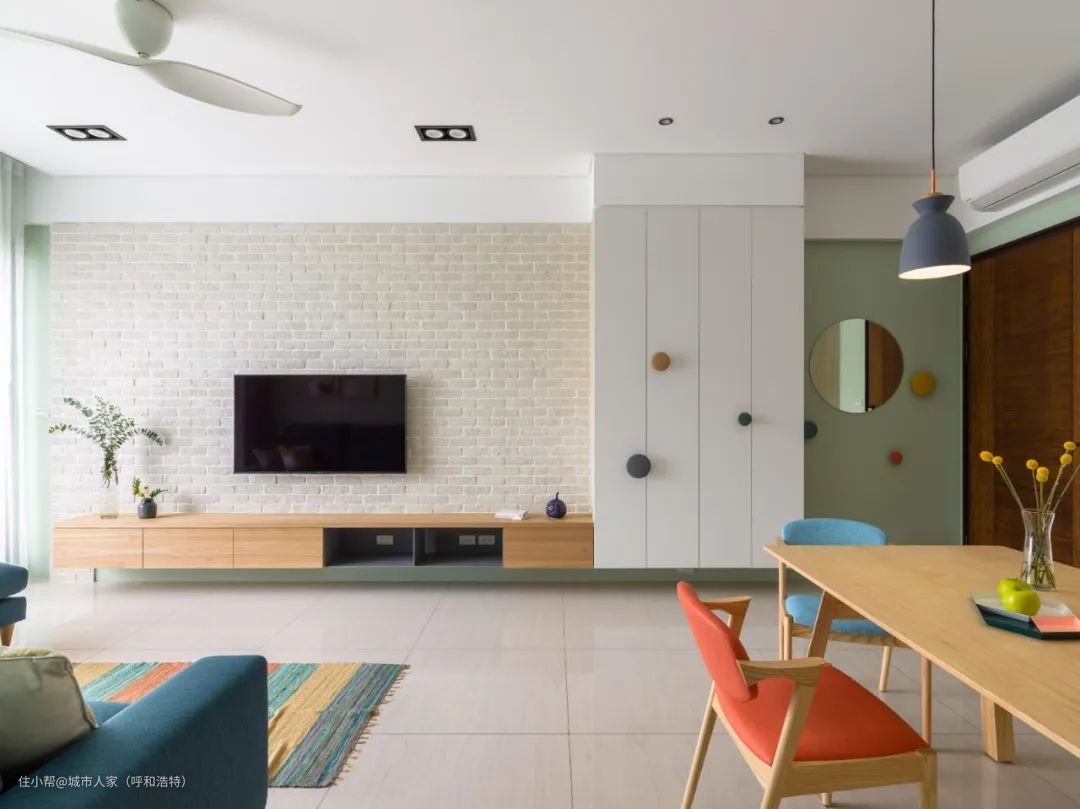 26、客厅储物不能忽视,电视背景墙是个非常棒的收纳空间,可以整面墙打柜子。