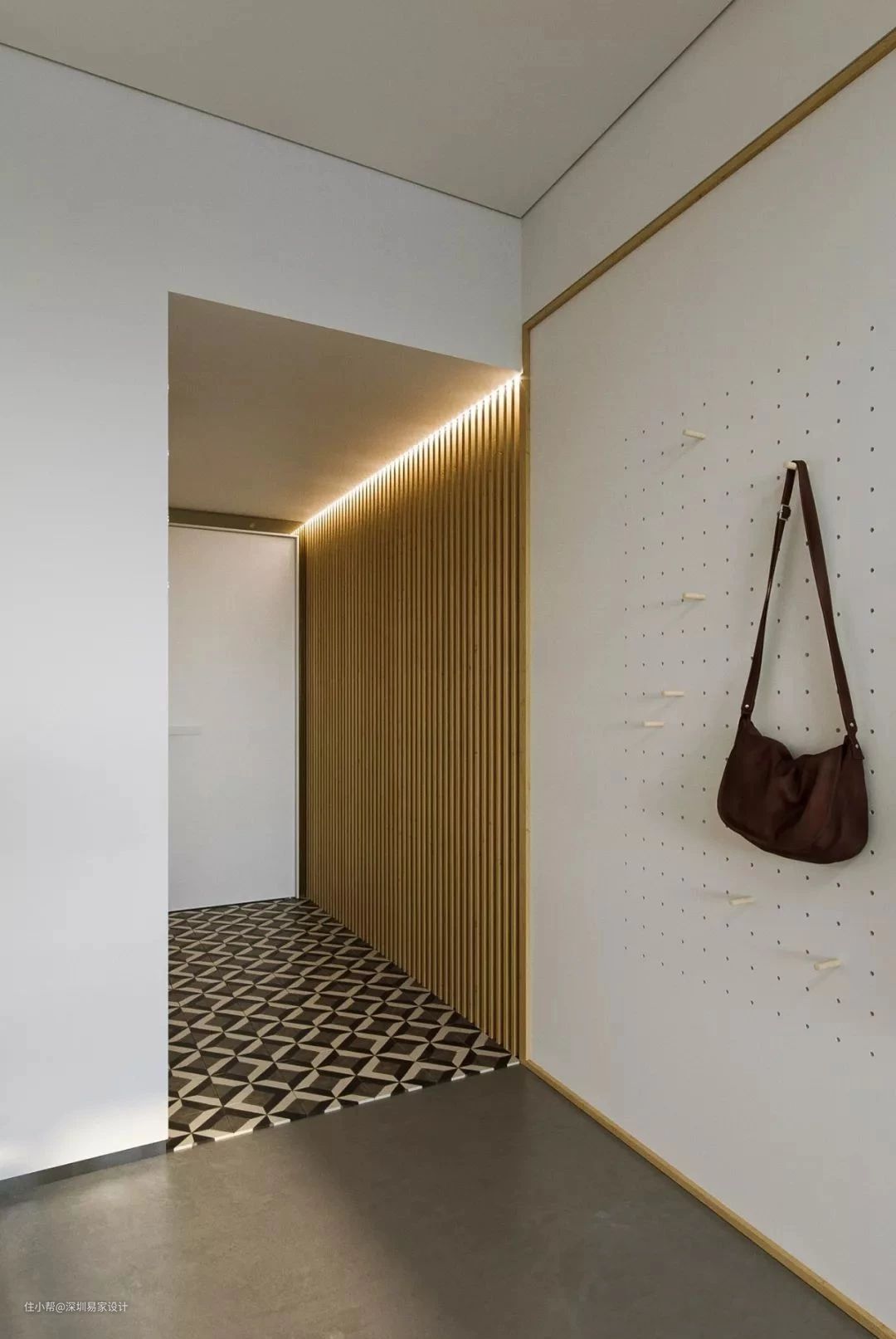 玄关装个洞洞板,可以利用墙面空间实现增加收纳功能,对小户型来说是无敌友好。