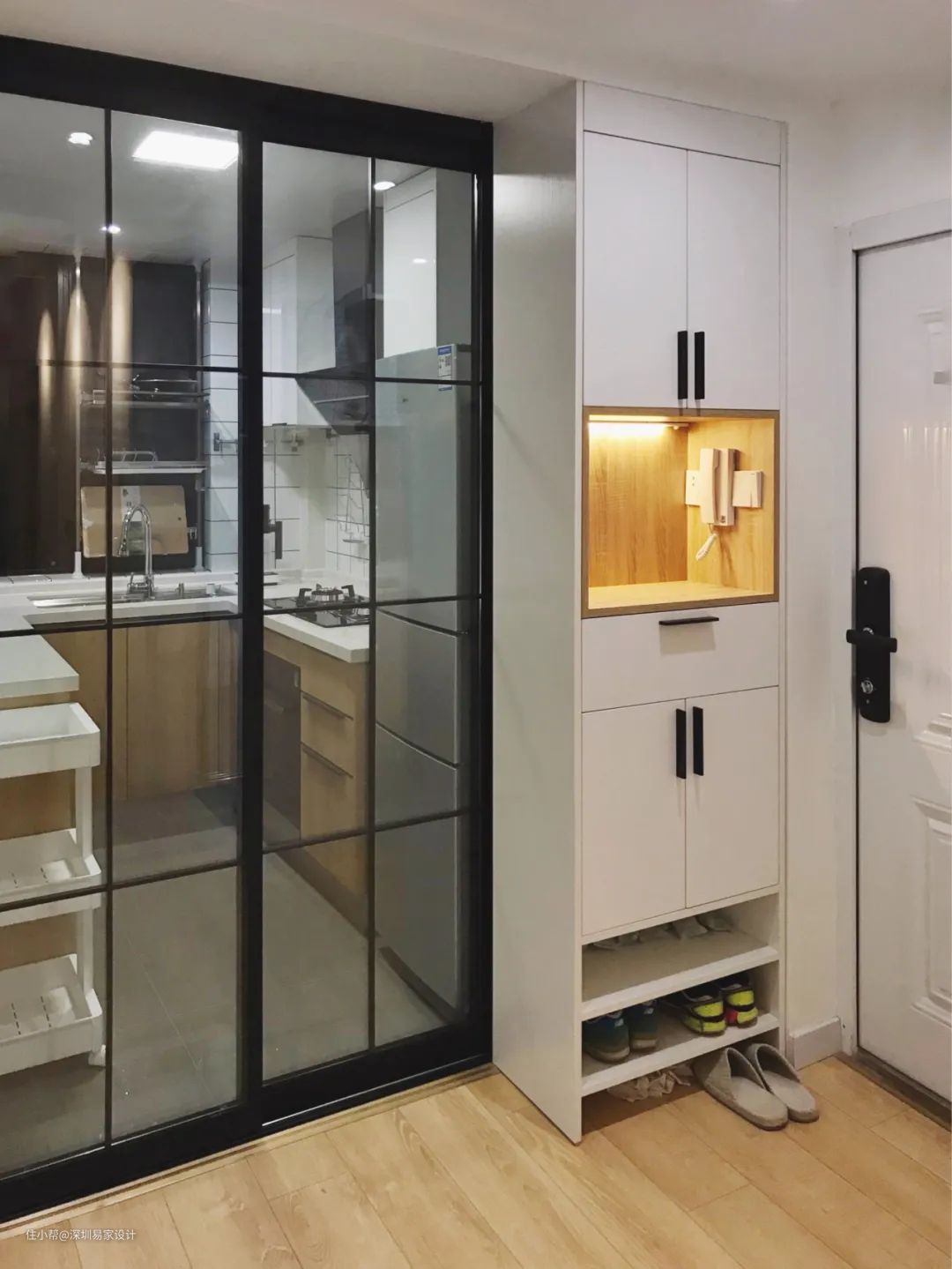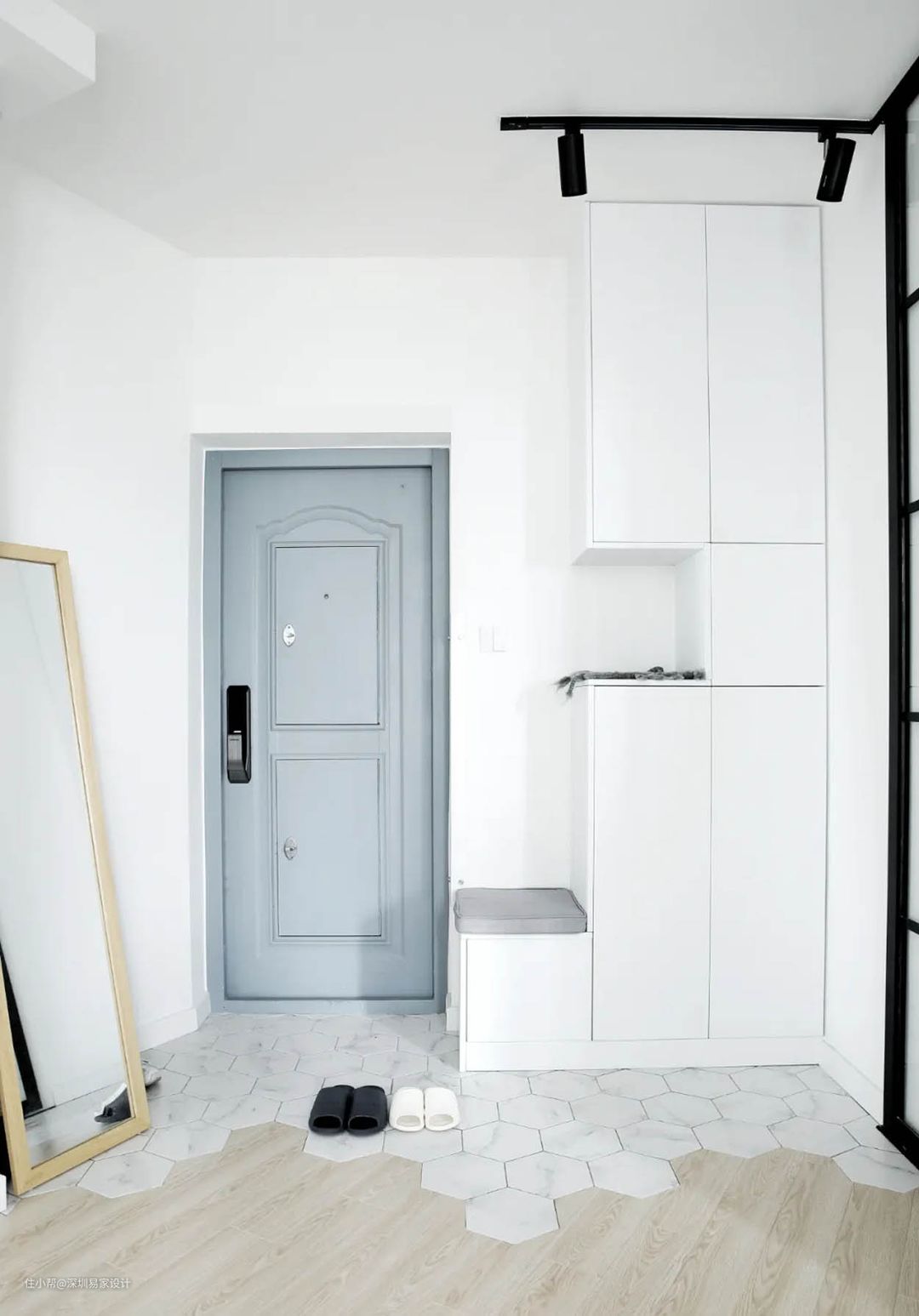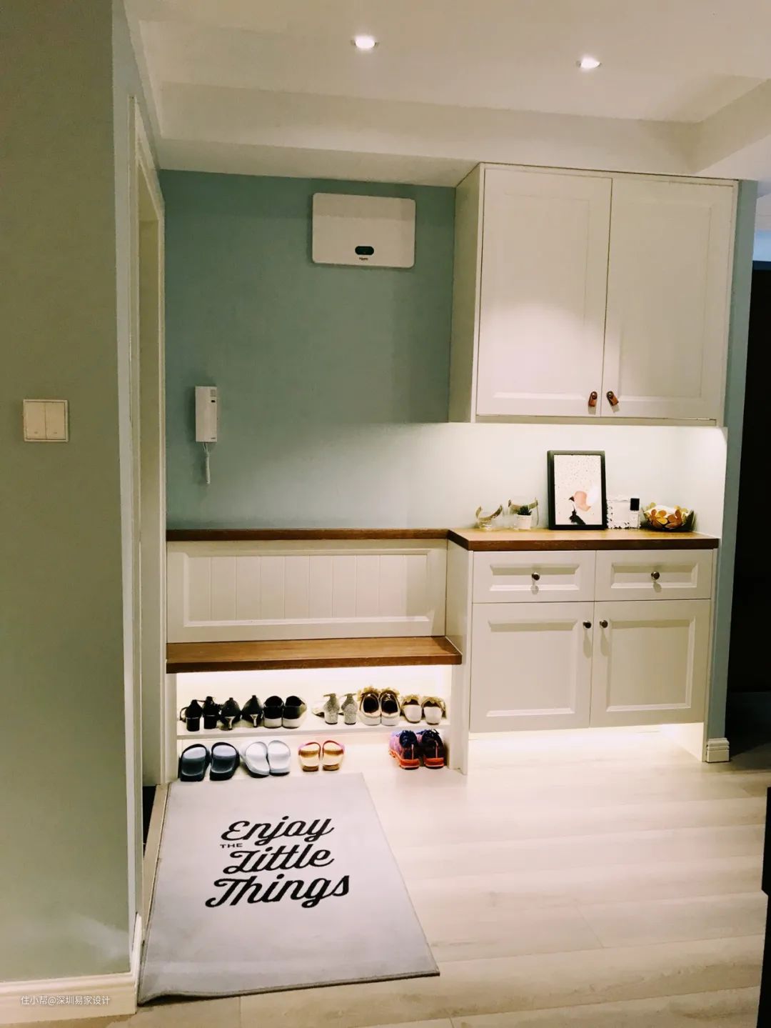 白天在外忙工作,下班后拖着疲倦的身体回到家,打开门换上舒适的棉拖,切换到在家的放松模式。你会发现,在小小的玄关空间,家人的角色切换也就在这一刻完成。