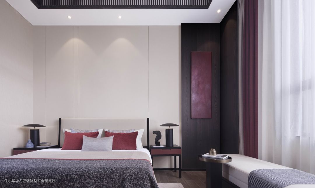 新中式风格卧室,给人一种宁静致远的感觉,让人放下身心享受生活的慢节奏。