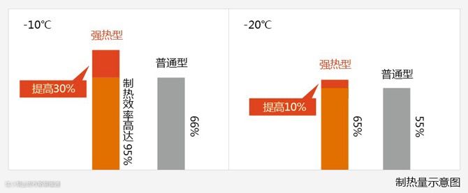 比如日立的强热地暖D系列,采用带补气增焓的二级压缩技术,改善冷媒循环系统,在系统循环中通过中间补气增加冷媒的流量,使制热量大幅增加,极大提高低温环境下系统运行的稳定性和热泵的制热能力。