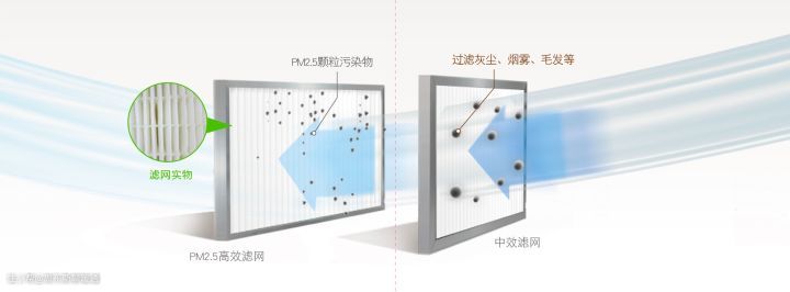 *下图为日立除臭性PM2.5过滤网,对直径为2.5μm的超细微颗粒过滤率高达96%以上。