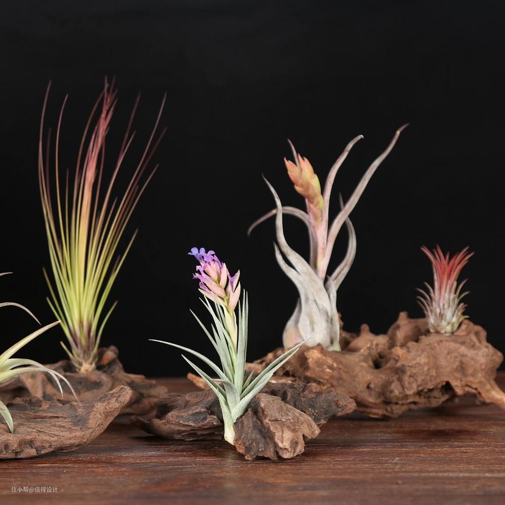 空气凤梨可黏附于枯木上,岩石上,或放置于贝壳上,盆器上,只要根部不积水均能生长。不少外国室内设计杂志,都有空气凤梨作为室内植物点缀家居,十分时尚。更多人大量种植空气凤梨,就用金属线或鱼线挂起来,造型生动奇特。空气凤梨的根部以附着植株于固定处的功能为主,所以即使没有根部亦可生存,折断或弄伤的枝干也能独立存活一段日子,若环境合适也能长出子株延命。