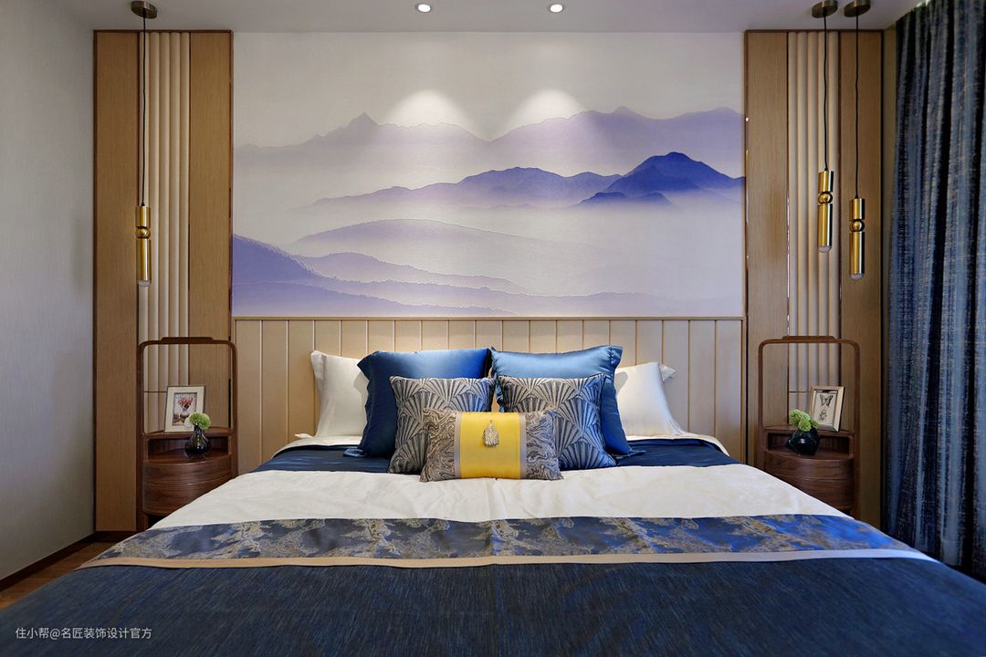 空间完美对称,布艺材质全用蓝色调为主,又不会显得突兀。