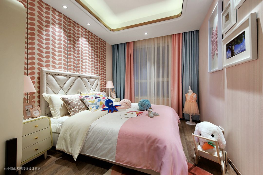 不仅是衣柜、床头柜,天花都采用圆角构造,保护孩子不发生磕碰受伤理念足以体现。