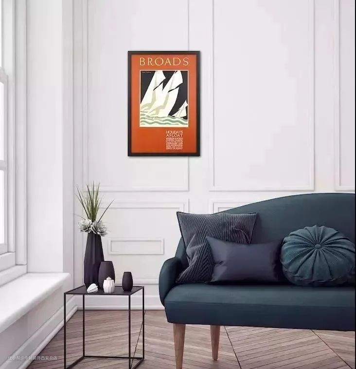 如果你想让画成为视觉焦点,就让挂画的主色调,和周围的主色调,形成互补色。