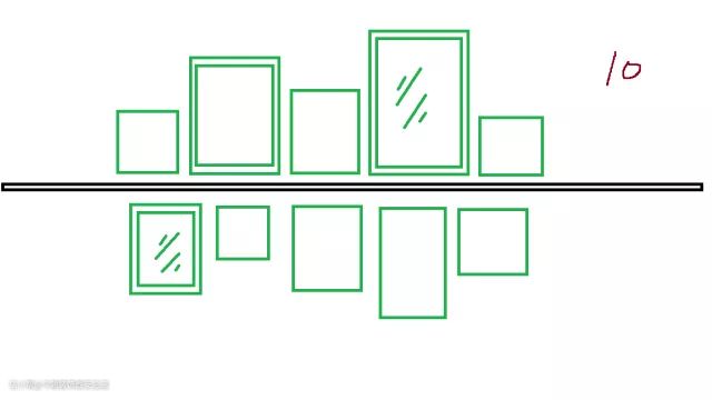 如果要在一整面墙上挂比较密,比较多的照片,可以先确定一条平行于地面的中轴线,然后以这条中轴线上下排开,同样遵循“有一定的对称度,但不要绝对对称”。