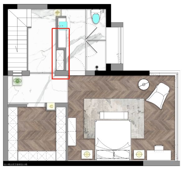 对于卧室附近的过道,如果是非承重墙,我们可选择砸墙重砌,将过道面积扩入卧室,避免面积浪费。