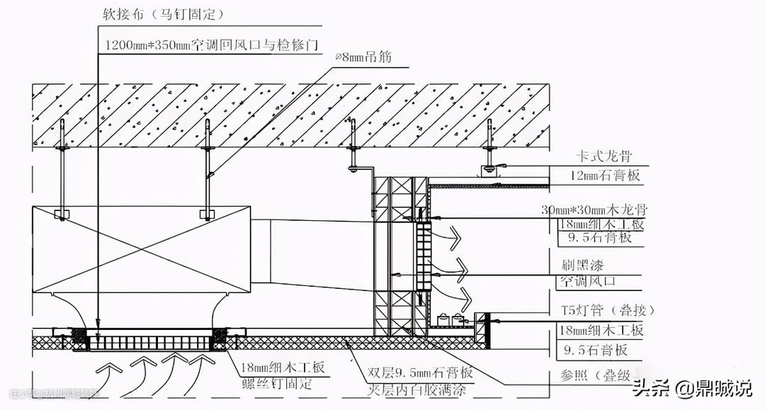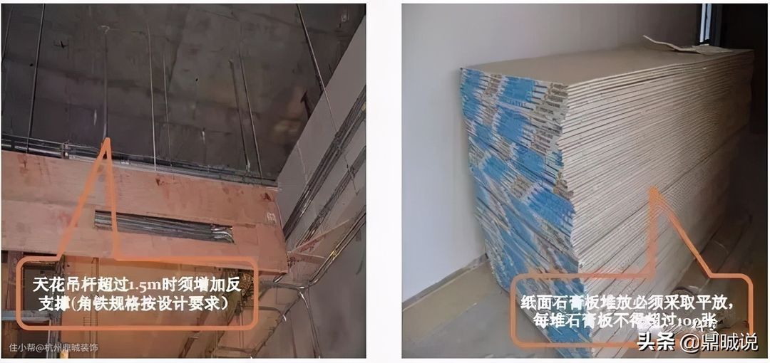 5、天花吊杆超过1.5m时须增加反支撑,主龙骨按房间短跨长度起拱3 ‰~5‰ 。