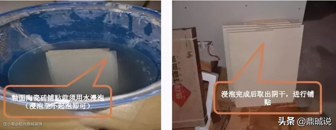 2、铺贴釉面陶瓷地面砖前,应先将陶瓷地面砖浸泡阴干。(浸泡至不起气泡即可取出阴干)