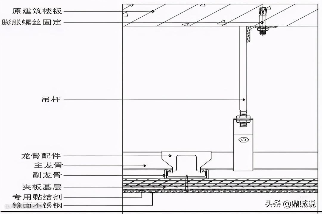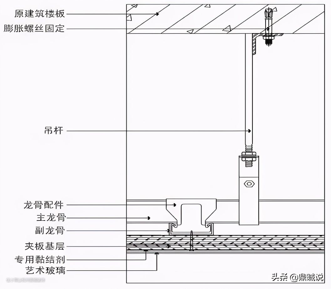 施工工序:弹线→安装沿边龙骨→安装吊挂杆件→安装次龙骨→安装罩面板→安装压条