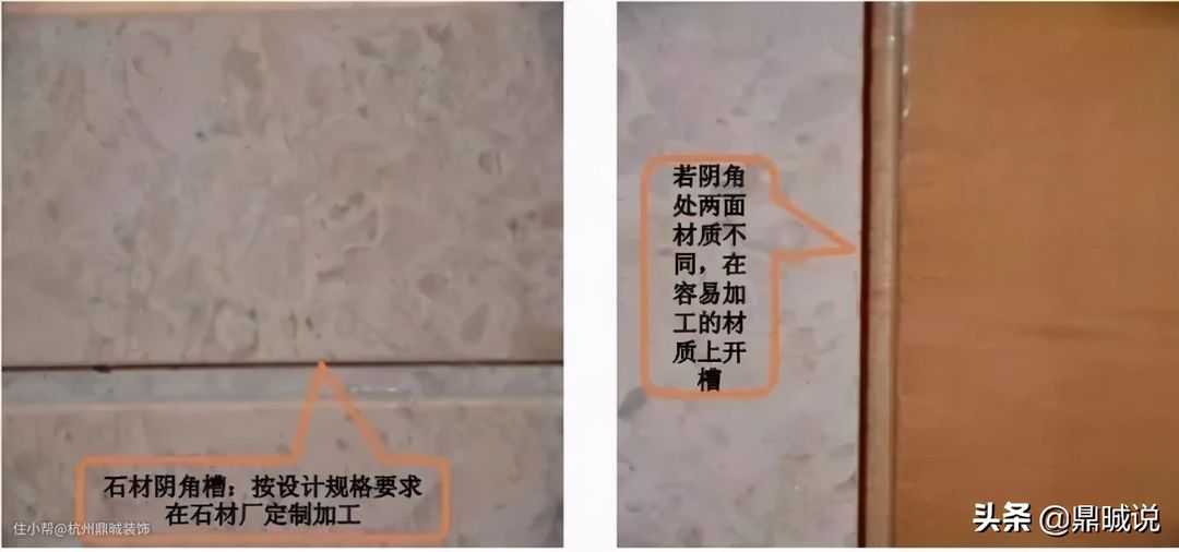 4、其它阴角槽:若阴角处两面材质不同,在容易加工的材质上开槽。施工图片: