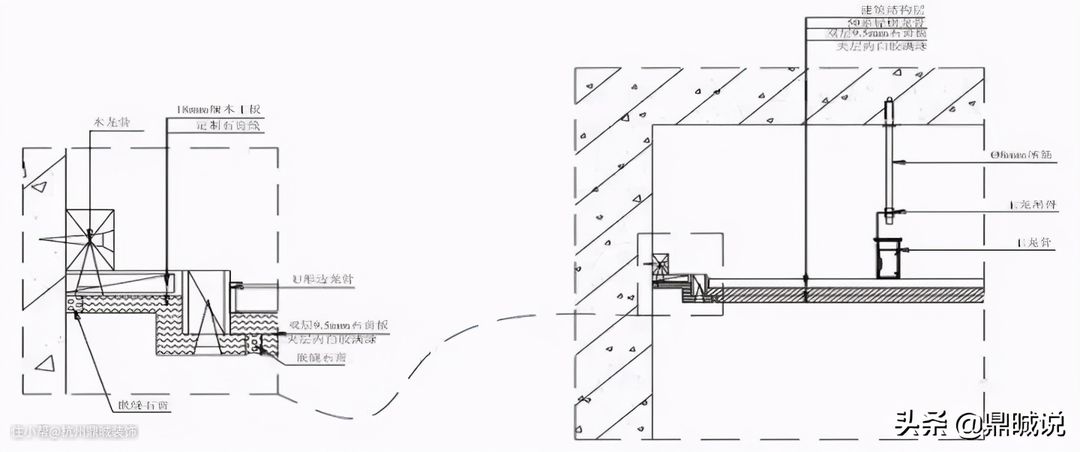 2、各类石膏板天花吊顶长度超过15m 的应预留伸缩缝,且伸缩缝两边应设置独立的主副龙骨。