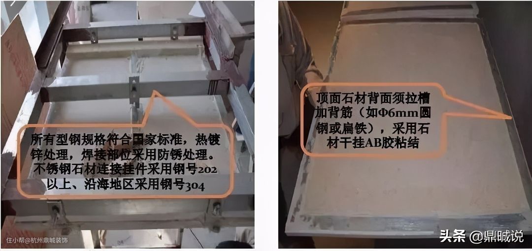 1、 所有型钢规格符合国家标准,热镀锌处理,焊接部位采用防锈处理。不锈钢石材连接挂件采用钢号202以上、沿海地区采用钢号304。