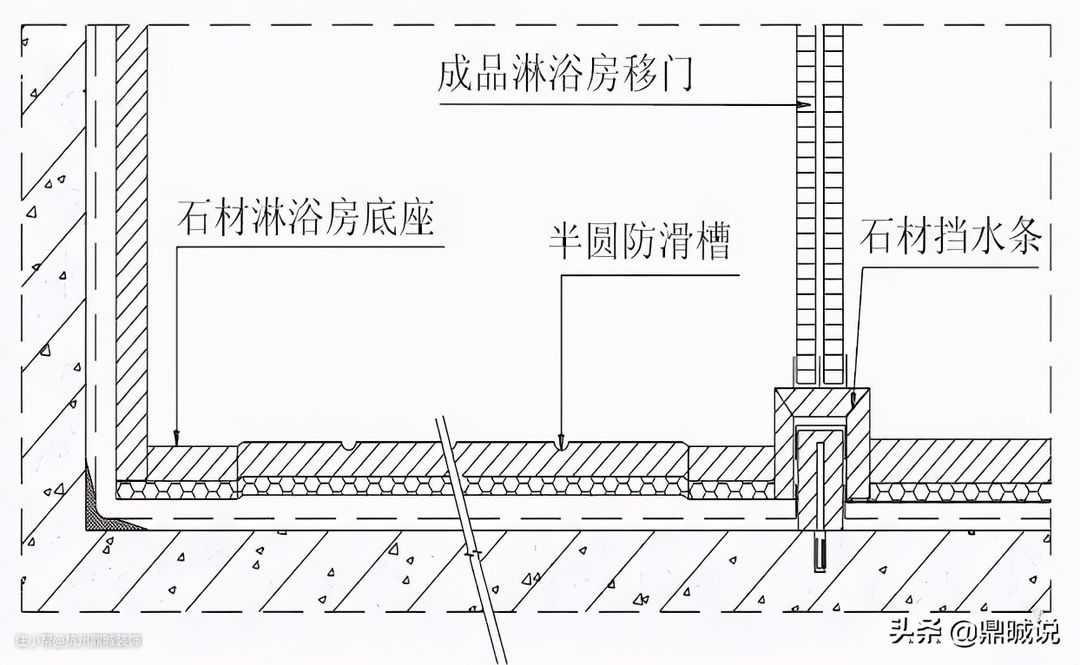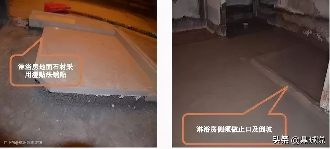 3、 沐浴房门槛石材须采用湿铺工艺进行铺贴,预防淋浴用水落地后向外渗透。