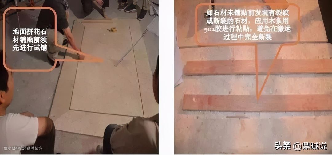 4、石材在铺贴前应进行试拼,出现颜色或纹理错乱时应进行挑选,必要时要求厂家更换。
