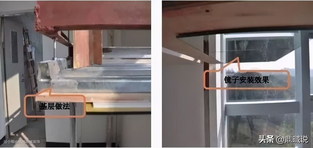 施工工序:基层制作→放线→玻璃/镜子加工→安装玻璃/镜子→打胶收边→清理