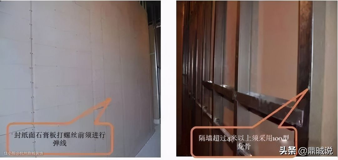 8、高度超过4m隔墙,应用100系列隔墙龙骨,或者按设计要求增加钢架。