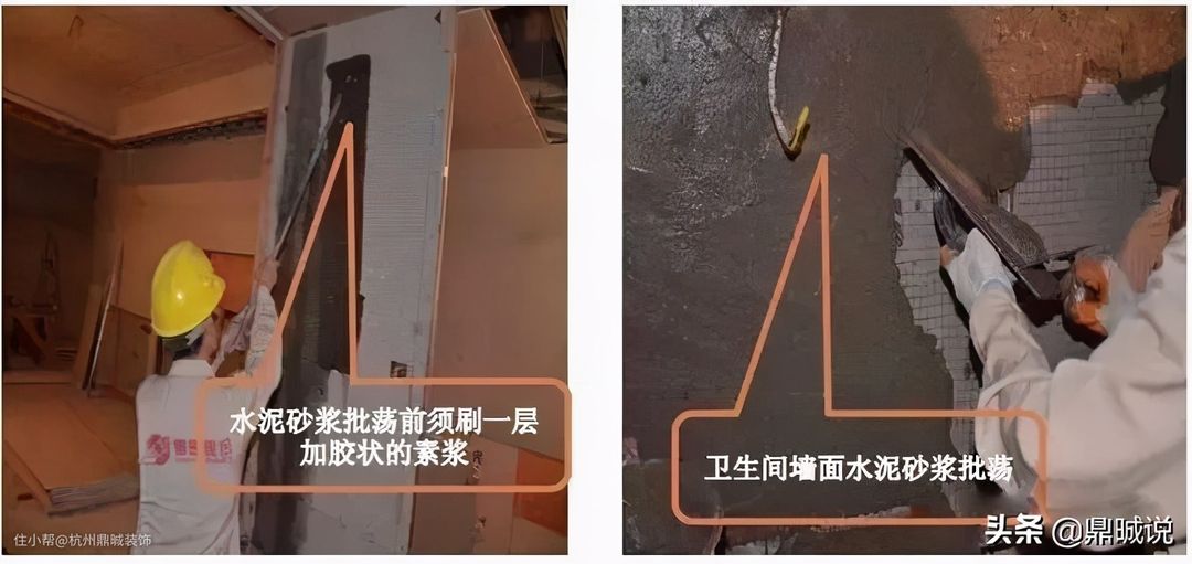 施工工序:基层清理→弹线→贴灰饼→刷素水泥浆→水泥砂浆找平→养护