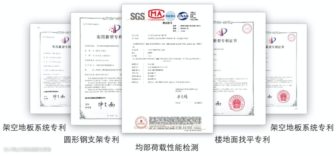 不仅如此,这款自主研发的CARR®卡瑞轻型架空地坪,拥有可架空承重面板的圆形钢支架、模块装配式楼地面找平装置、架空地板系统三项专利证书,产品均部荷载能力得到了国际检测认证机构的官方认证。权威机构为产品的品质提供了可靠的背书,因为专业,所以值得信赖。
