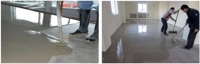 之所以叫自流平,是因为它的地坪材料加水搅拌后,变成自由流动的液体,铺到地面后能够迅速展开,根据地势高低自行填充,最终获得高平整度的地坪。