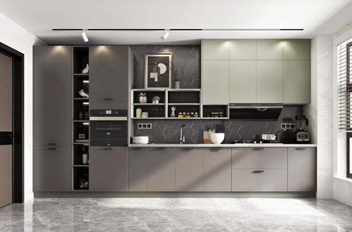 7:橱柜(橱柜的做法就有很多种,比如说现场打造,还有购买成品的成品的一般材质有大理石材质的,实木材质的,刨花板材质的。运用的比较多,一般是刨花板材质的居多,因为刨花板材质的防水性比较强,实木材质多用于高端家装。品牌的话,欧派,皮阿诺橱柜等)