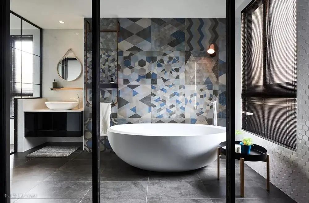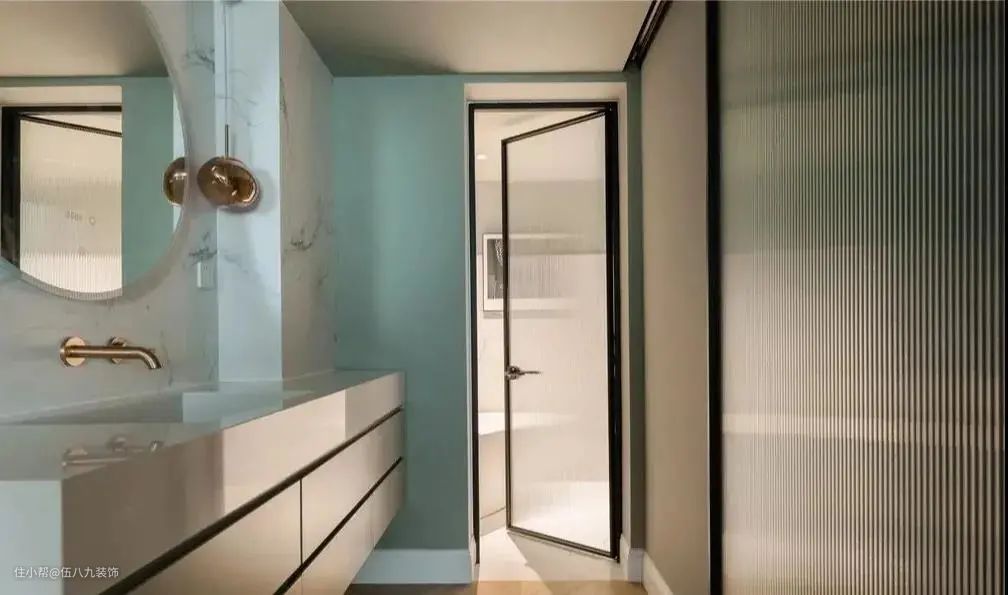 如果卫生间的空间很大,实木门是首选,选择内开的方式。对于没有窗户的暗卫来说,最好装不透明的玻璃门,能保证隐私性的同时引入光线,解决采光不足的问题。