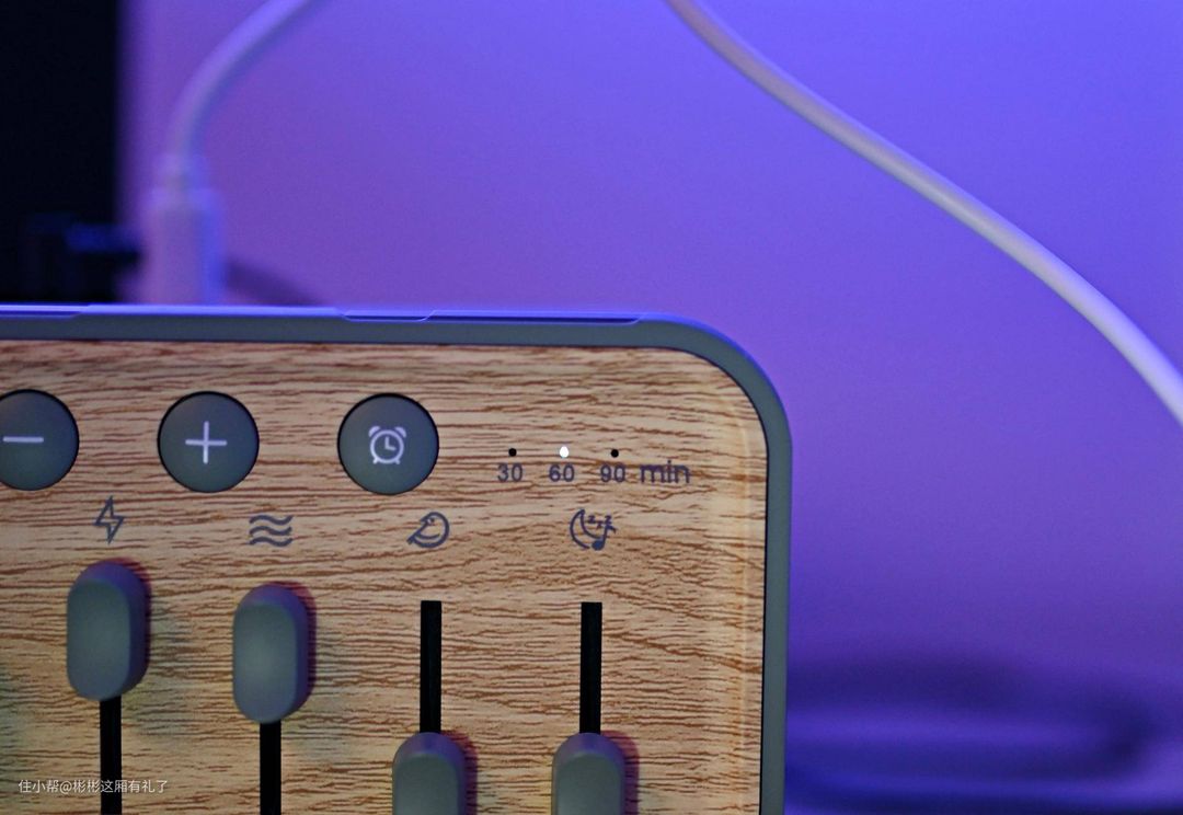 ▲拿到音箱的第一个晚上还挺兴奋的,放了一个晚上的下雨声和打雷声。放在窗边,情景超级真实,就像真的下雨打雷一样,确实有助于入眠。音箱还有一个定时关闭模式,可以设置30分钟、60分钟或者一个半小时自动关闭。睡着之后就能保持安静,同时也更加节能。