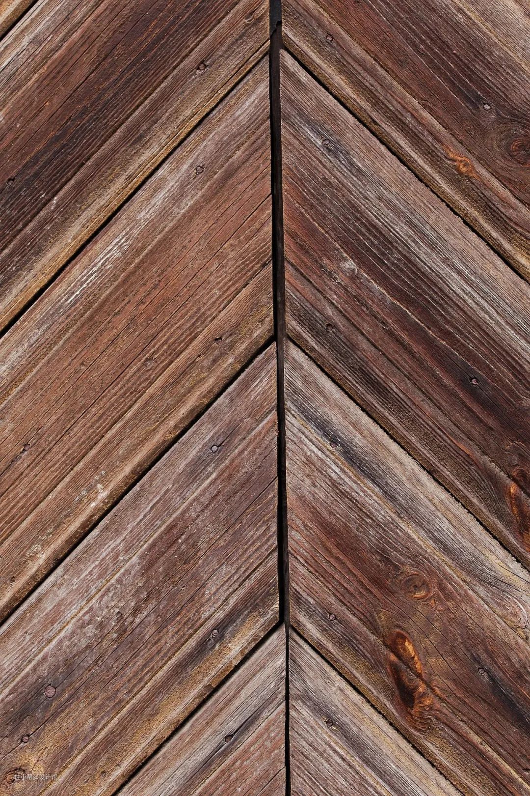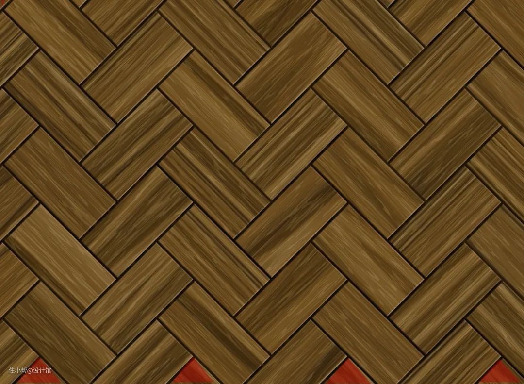 把“7字拼接”旋转45度,就得到了人字拼接的地板方案了,“7字拼接”与“人字拼接”这两种地板拼接方案,整体视觉效果上是比较类似的,两者的区别在于铺贴时候的起点与收口,7字拼接与墙面的接口都是直线相接,而人字铺与墙面的接口则是相交的斜线。