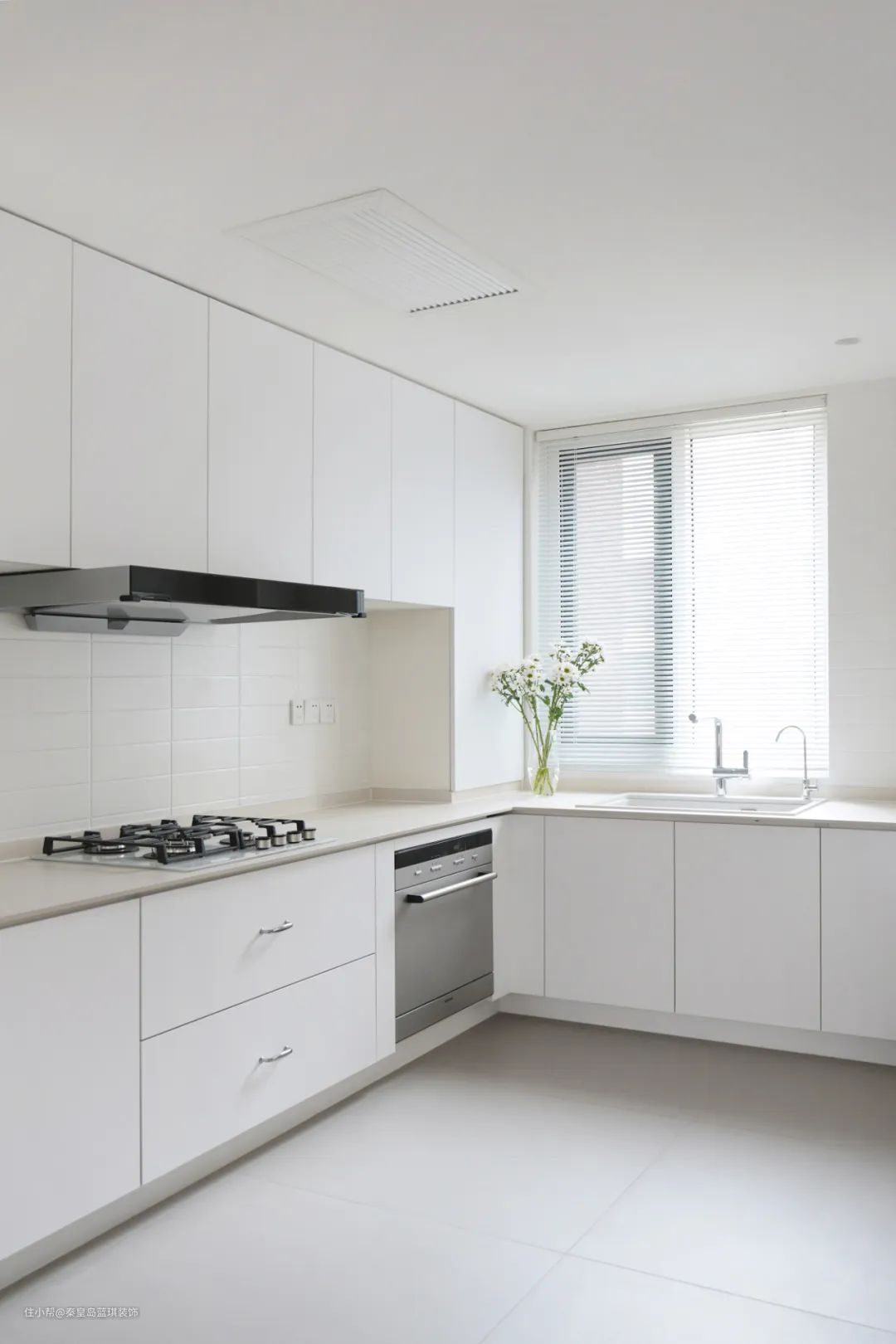 厨房部分的橱柜依旧采用纯白配色