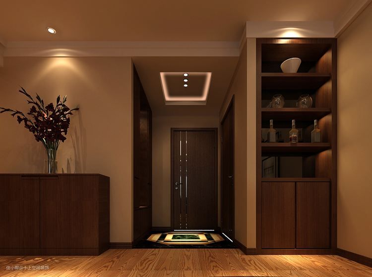 还可以在柜中部留空嵌入光源,摆入精致小摆件,体现出整个空间大气而优雅的艺术品味,增加生活趣味。