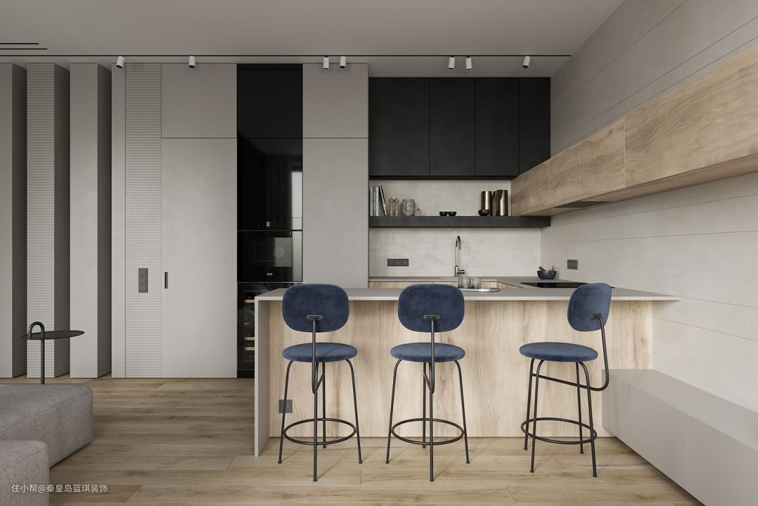 弯折过来的厨房岛台还兼做吧台