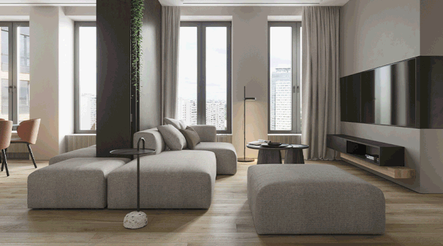 灰色模块沙发具有多种摆法