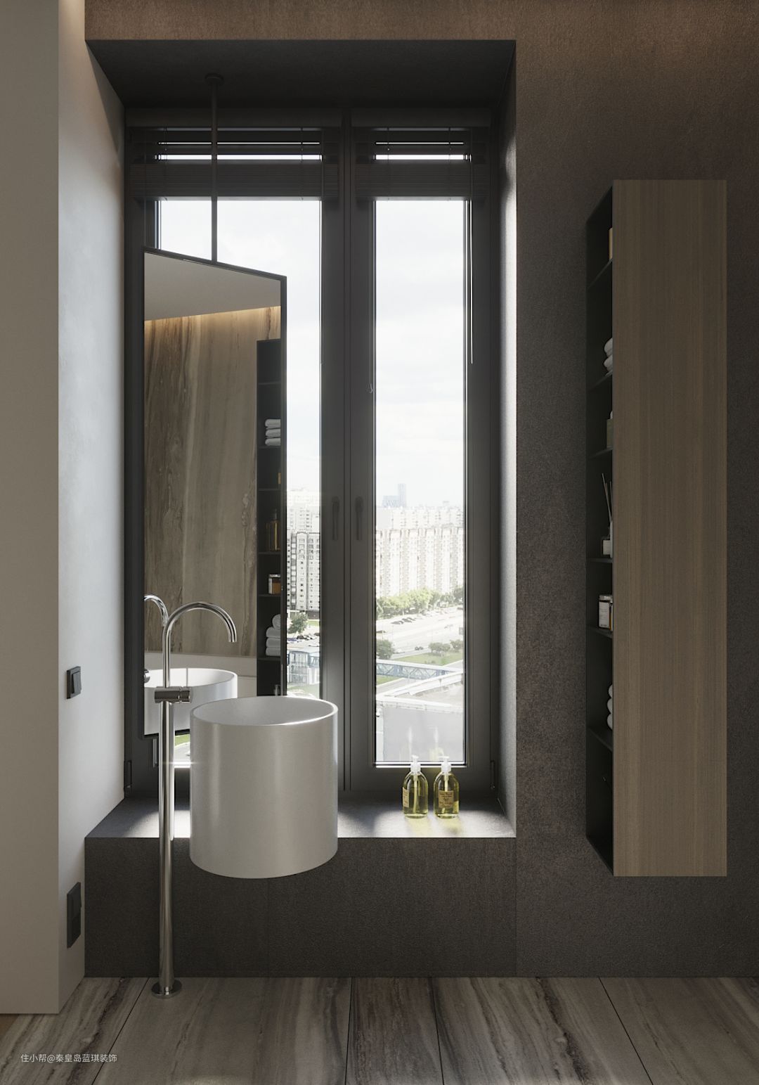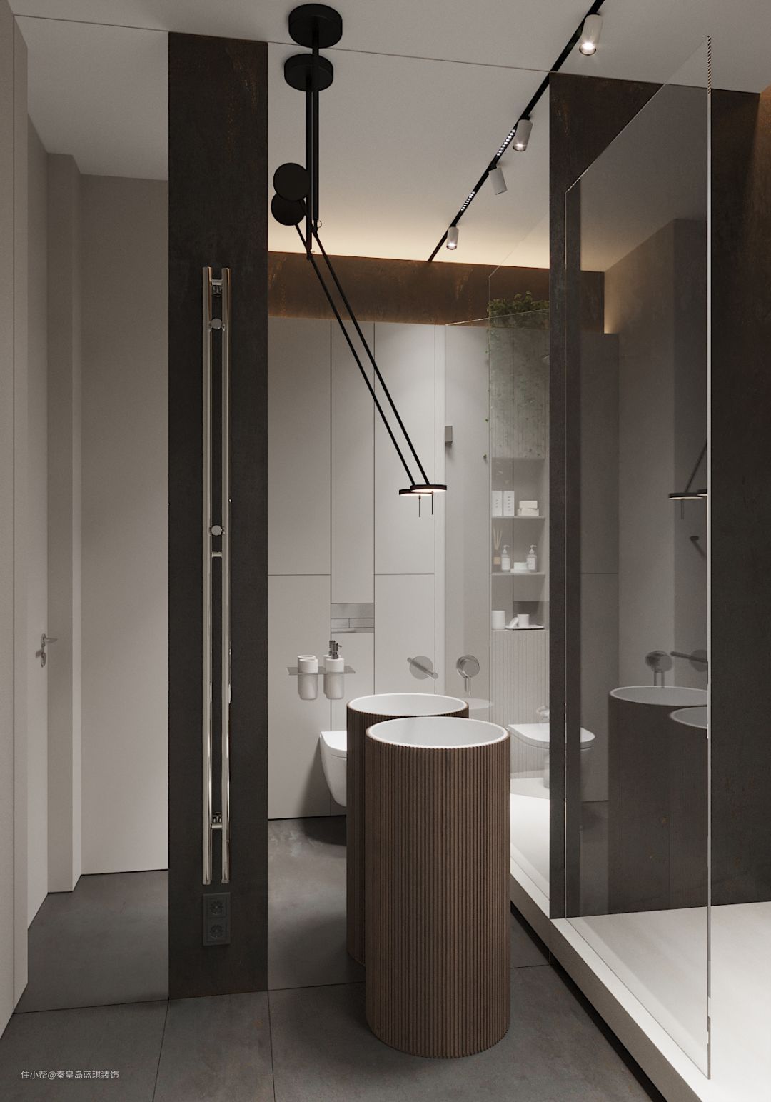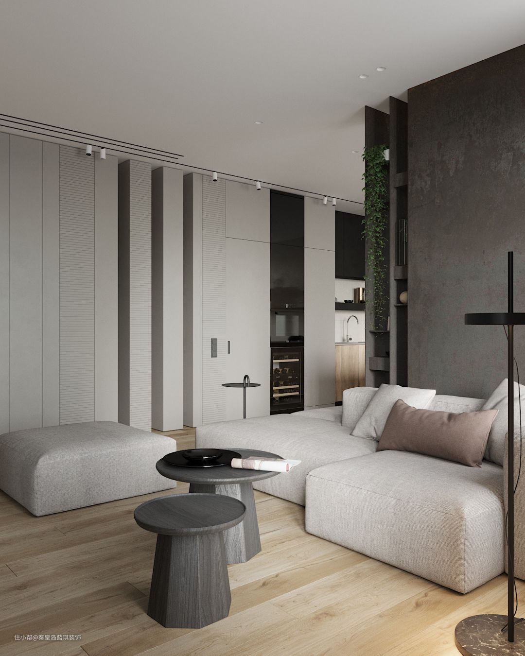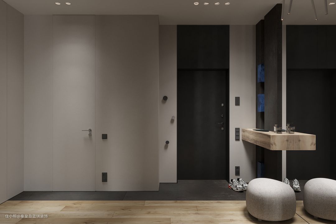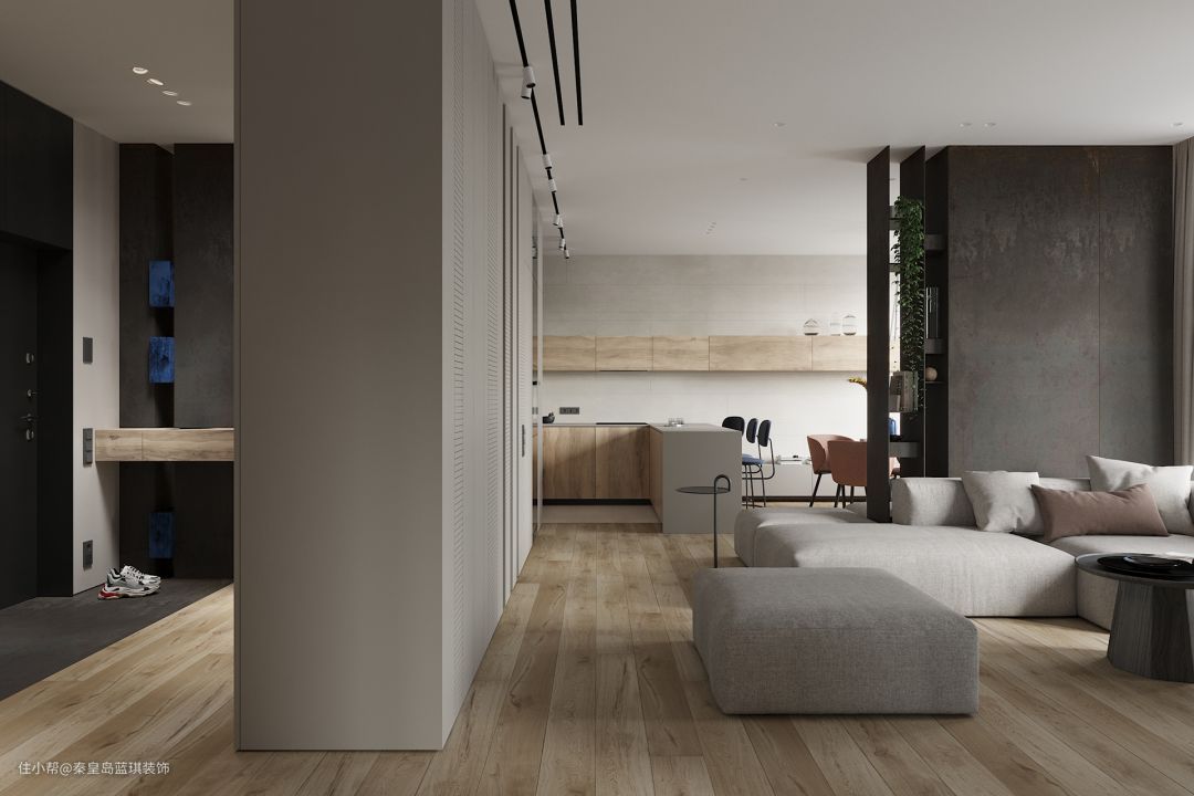 在这间93㎡ 公寓中,利用锈蚀感墙面材质架构兼具