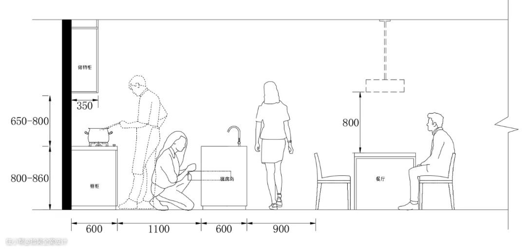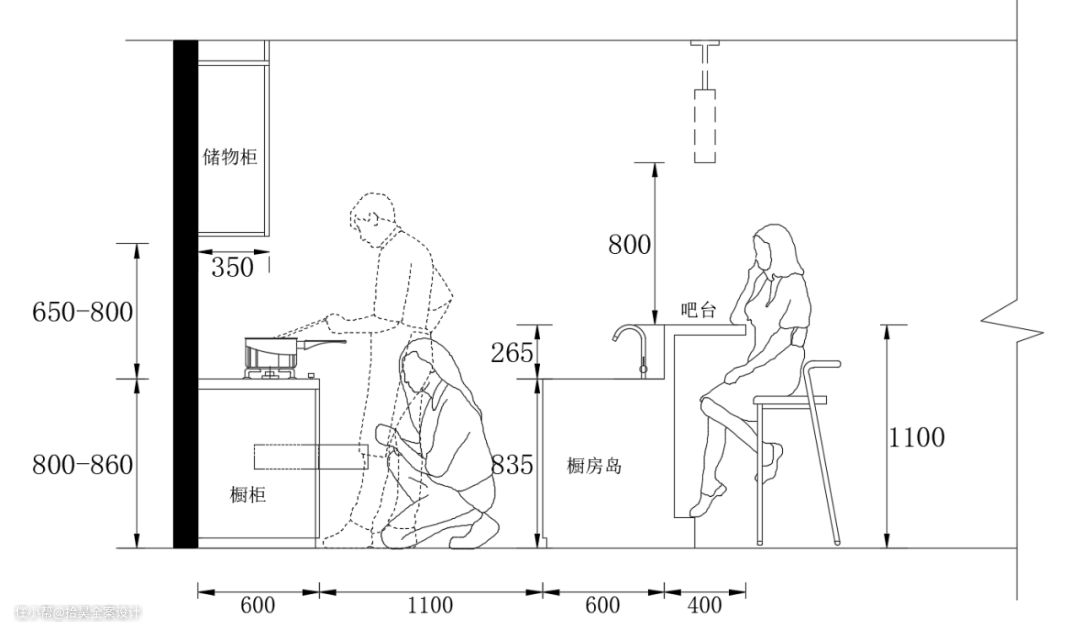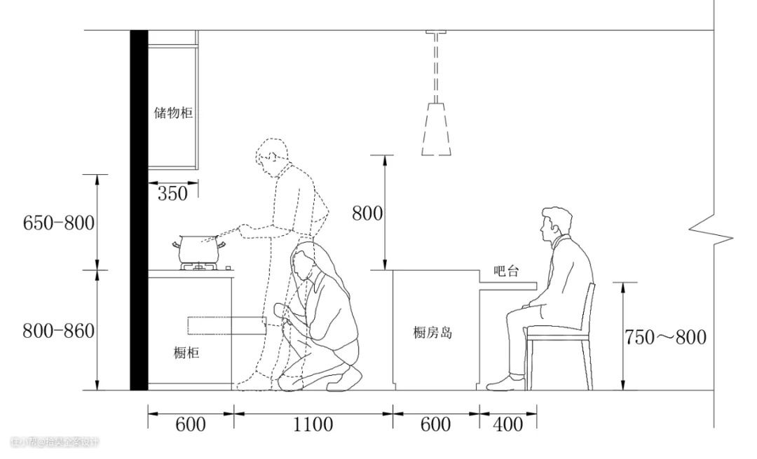 △ 常规岛台尺寸布局——立面
