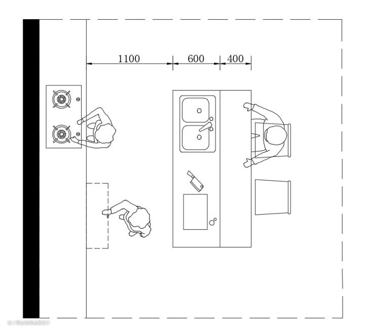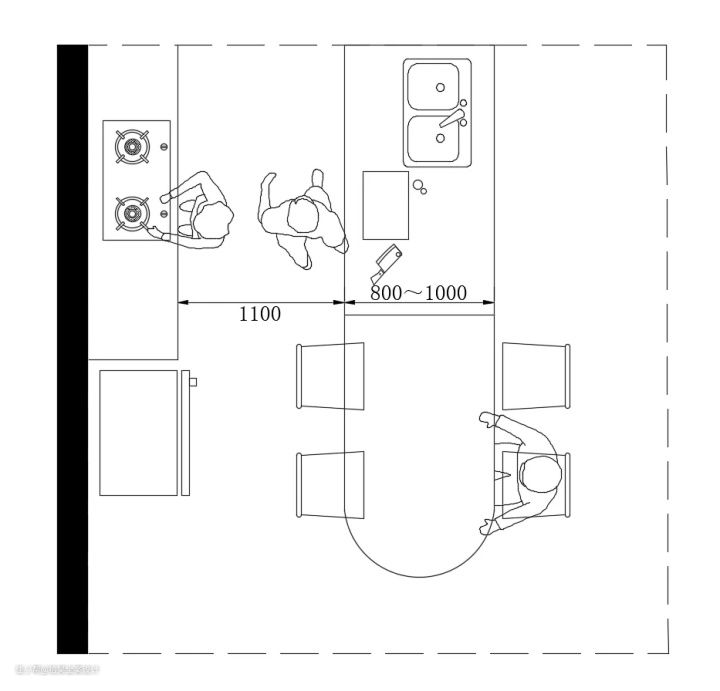 ②岛台与餐厅之间的通道不应小于900mm;