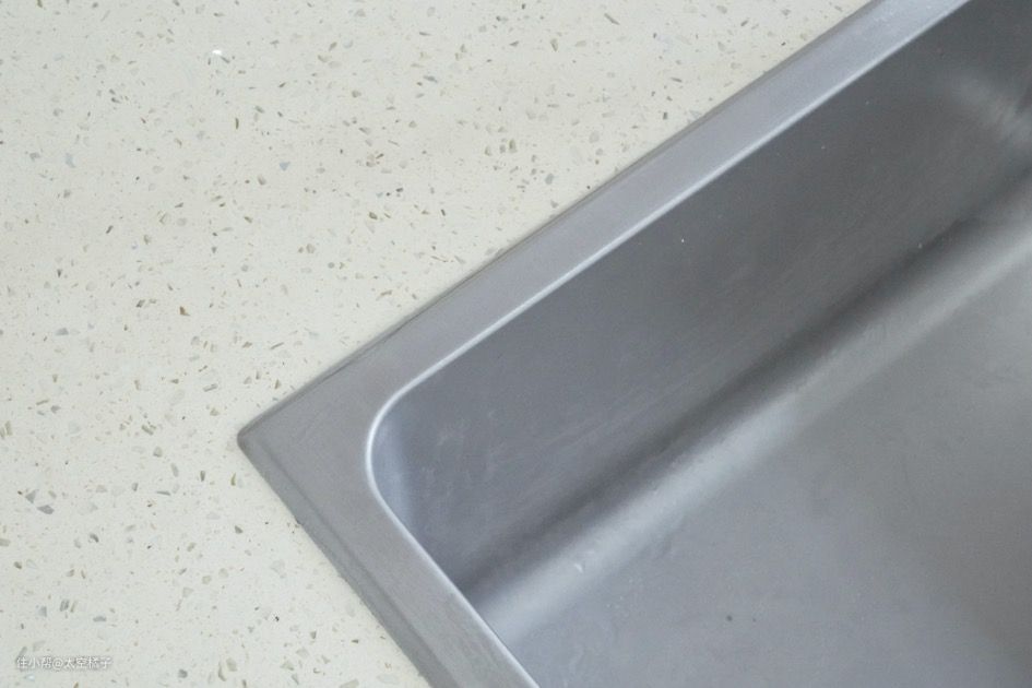 细节方面做得其实蛮到位的,小斜边槽是紧紧的卡死在台面上,而且安装的时候,方太的师傅给水槽外围打了一圈防水胶。