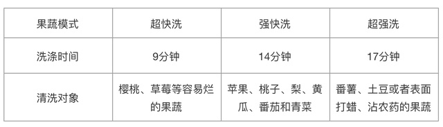 果蔬的三种模式各有用处,平时吃草莓、车厘子还是要冲洗一下的,比用盐、用醋方便多了,也不用担心洗烂。