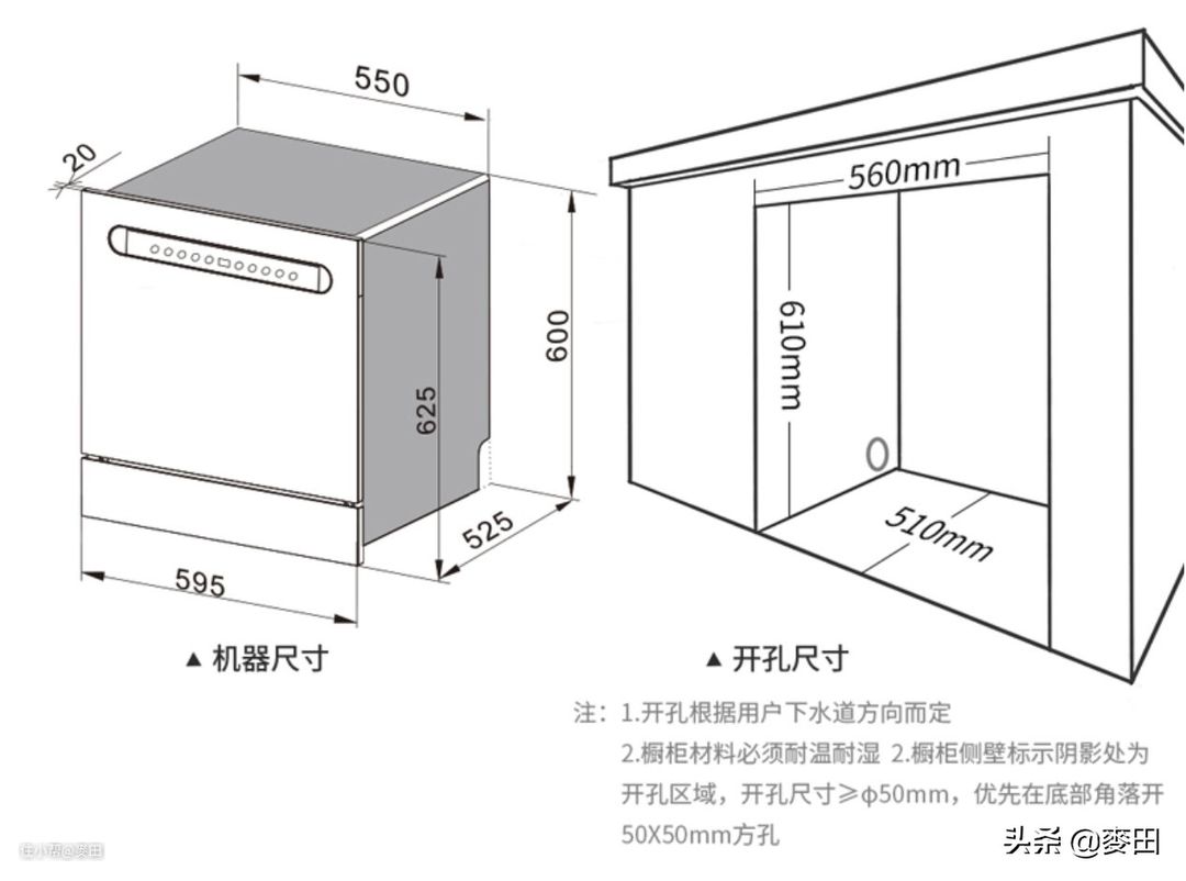 关于洗碗机的尺寸,我研究了许久,最后在网上找客服确认了消毒柜的安装尺寸,确认开孔尺寸相差无几。实际安装也确实是一分不多,一分也不少,刚刚好!