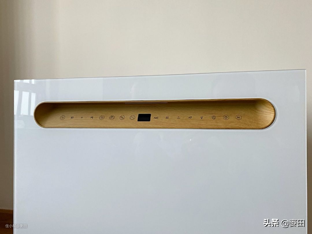 如果说白色的钢化玻璃面板是颜值是保障,那么樱桃木的控制面板绝对称得上是点睛之笔了。所有的触摸按键以及LED显示屏都嵌入在樱桃木板中,显得很上档次。