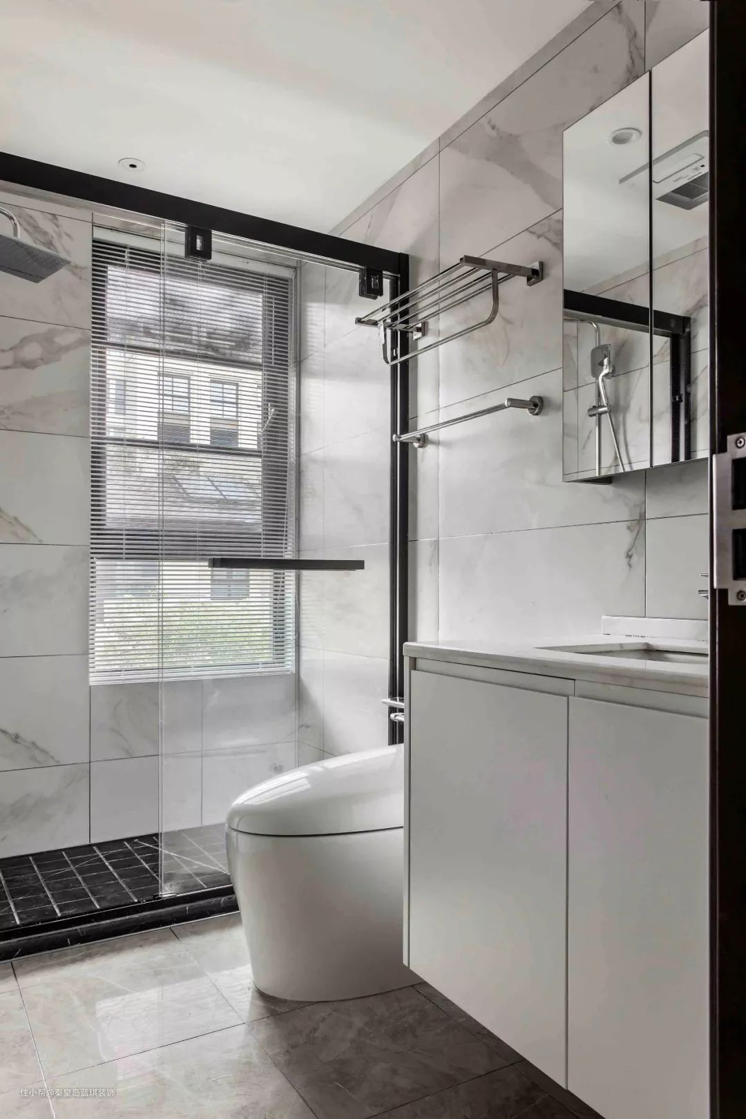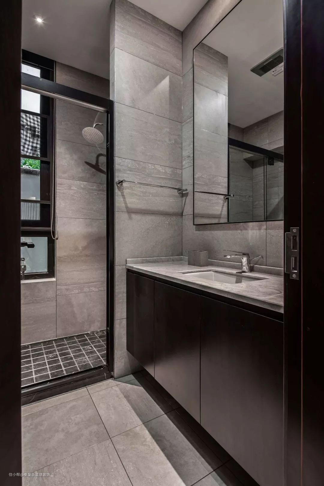 浴室以呼应主卧的方式,通透且简约。衣帽间功能分区完备,内敛且精致。淡然质朴的装饰,又能让人放松心灵,这一切有效提升使用体验感。