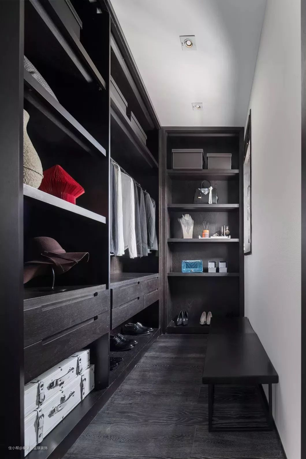 衣帽间和次卧房门和周边墙体做了视觉的统一处理