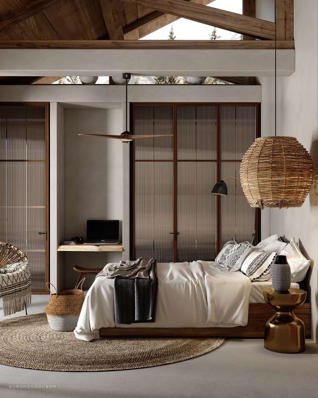 ”无一物“是侘寂重要的特点,通过少之又少的家居饰品,表象侘寂淡泊浮华的态度,因此”侘寂风”家居风格中,房间的家具、装饰少而精,简洁而具有设计感,这非常考验设计师对风格把控能力。