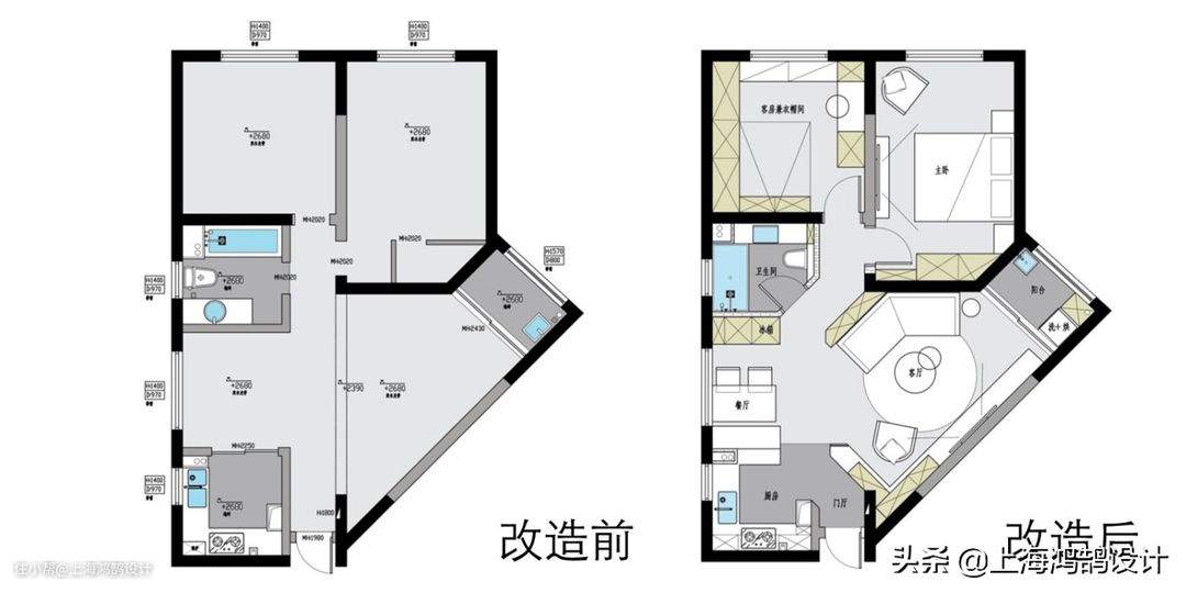 本案的房子比较特殊,购房过程比较曲折。对于户型格局上来说,并不是业主的理想型,进门正对卧室与三角形客厅是她无法忍受的存在。