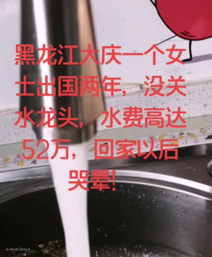 水龙头没关出国两年水费52万,视频是假的,教训还是要吸取的