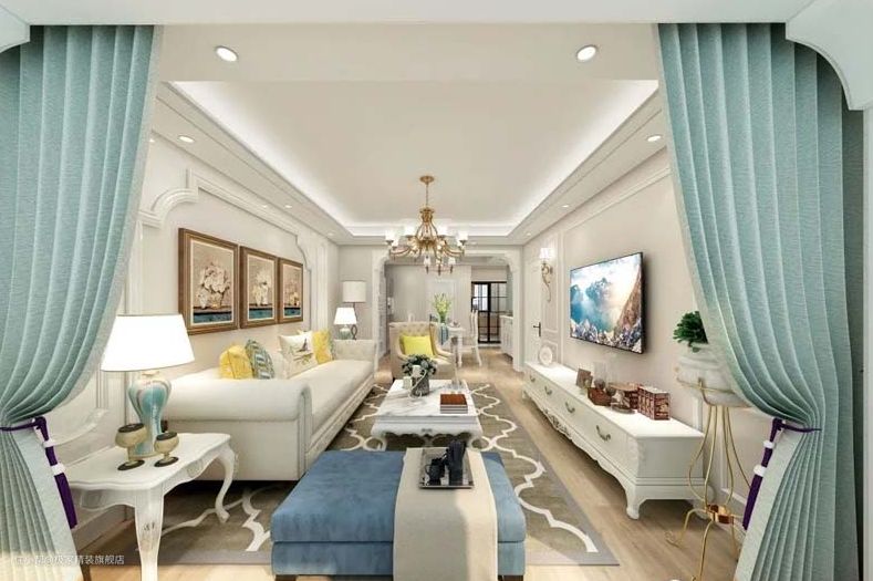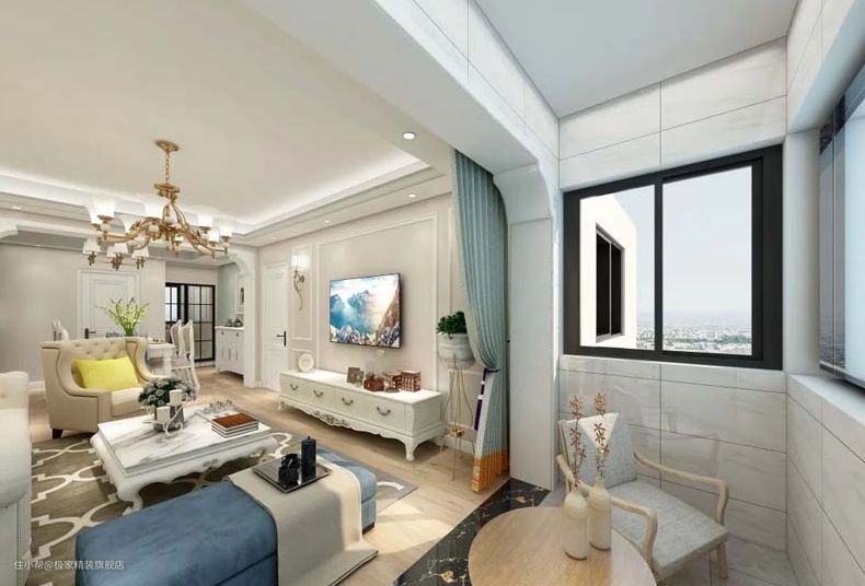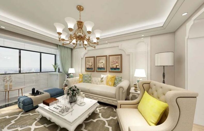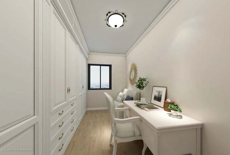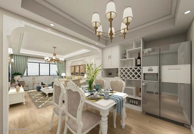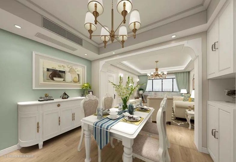 因为家中主要是老人居住,夫妻二人喜欢简约又比较上档次的风格,设计师在颜色选择上多以米白,浅棕色系为主色调,搭配原木地板,与上方的美式复古吊顶灯相呼应,视觉上更干净舒服,也符合年长者的审美风格。