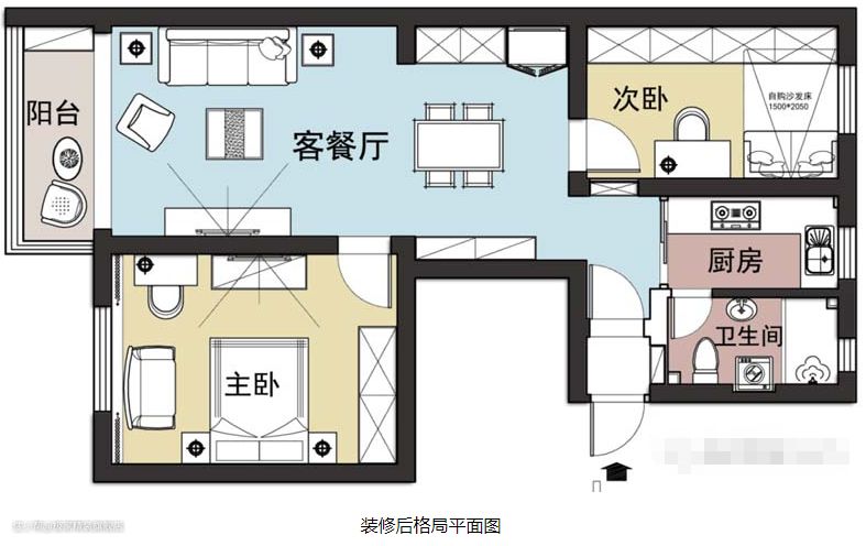 2、厨房间由开门更换为移门,加强采光的同时方便进出